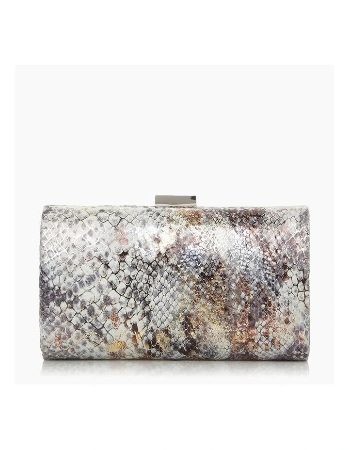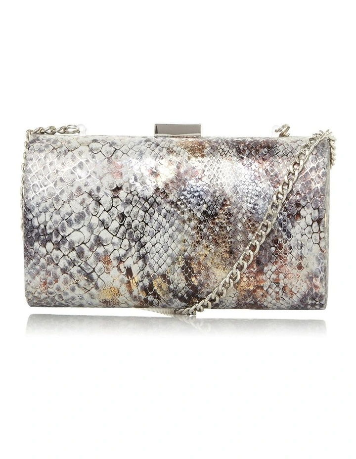 The Bustle clutch from Dune London is a great modern accessory. Defined with a modern croc-effect finish all over and a clasp fastening. It’s complete with hardware and a slender chain shoulder strap.