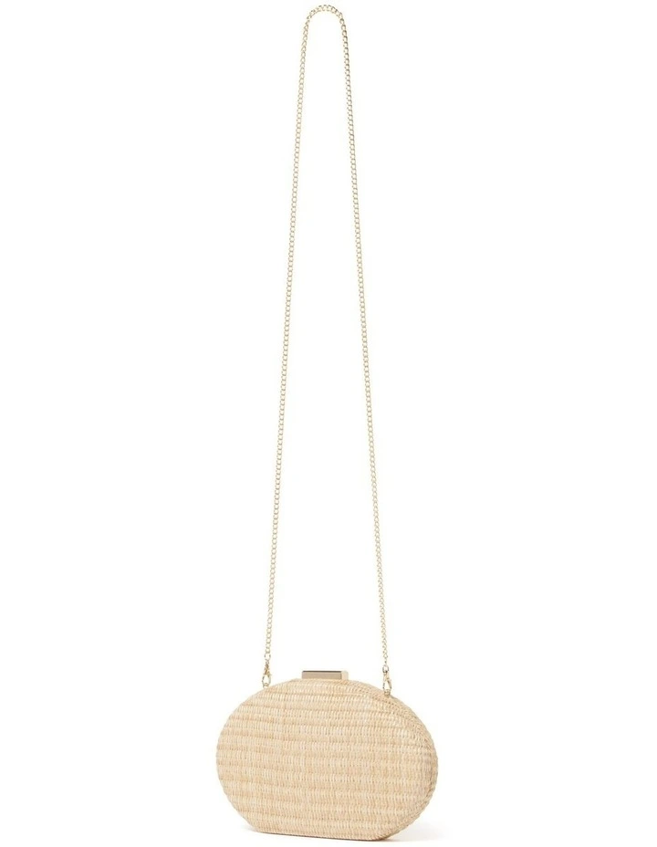 Feminine design meets trending style. Complete your look with the Maisy Weave Hardcase Clutch from Forever New.