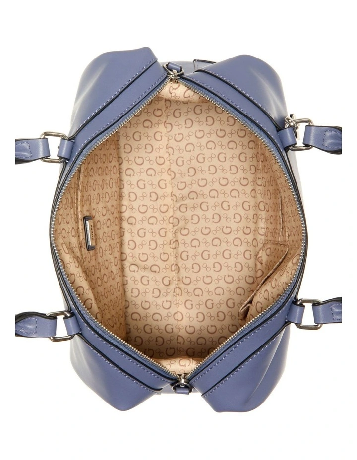 For fun with plenty of function, there is no better accessory than the Lindenberg Satchel in steel from GUESS. Made from a smooth faux leather and finished with refined silver hardware, this bag is perfectly sized for your everyday needs. The design includes dual straps and a roomy main compartment, so that you can easily grab and go.