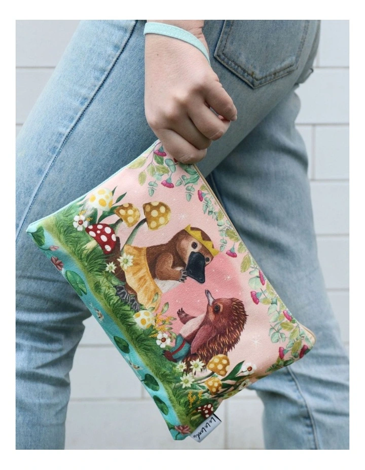 Explore the Australian woodlands with La La Land’s Good Times Together Clutch Purse. This bag features native Australian critters illustrated by Murilo Manzini. Digitally printed on thick cotton blend fabric, with solid colour background.