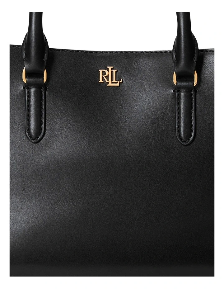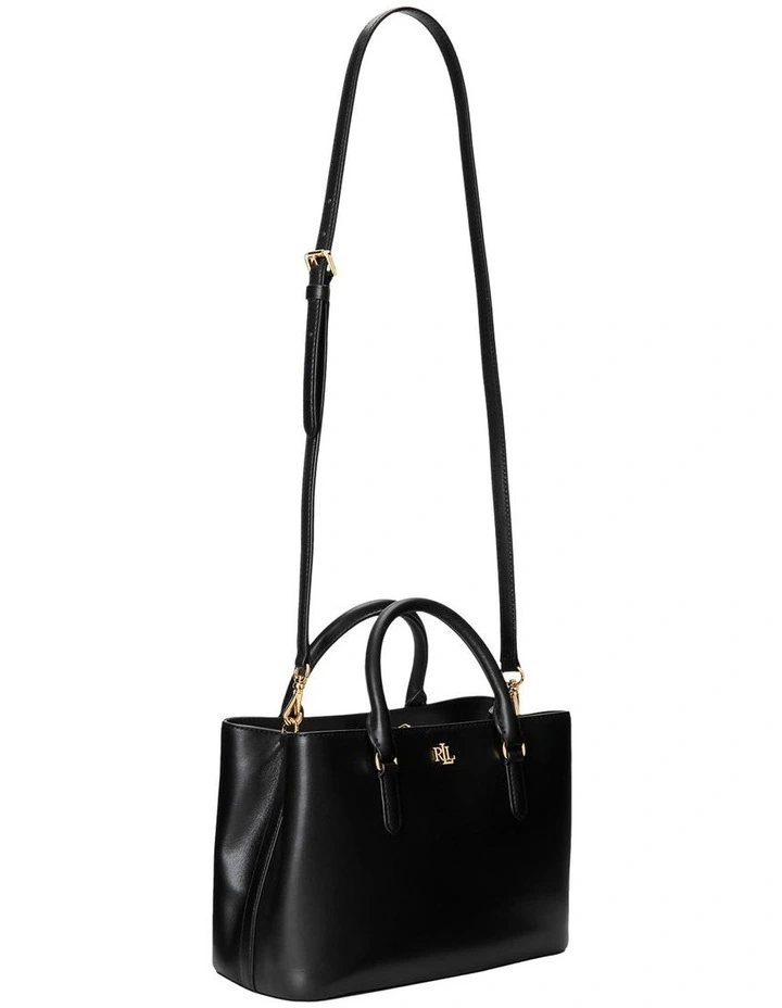 - Smooth Leather Small Marcy Satchel Two top handles, each with a 3.5″ drop.