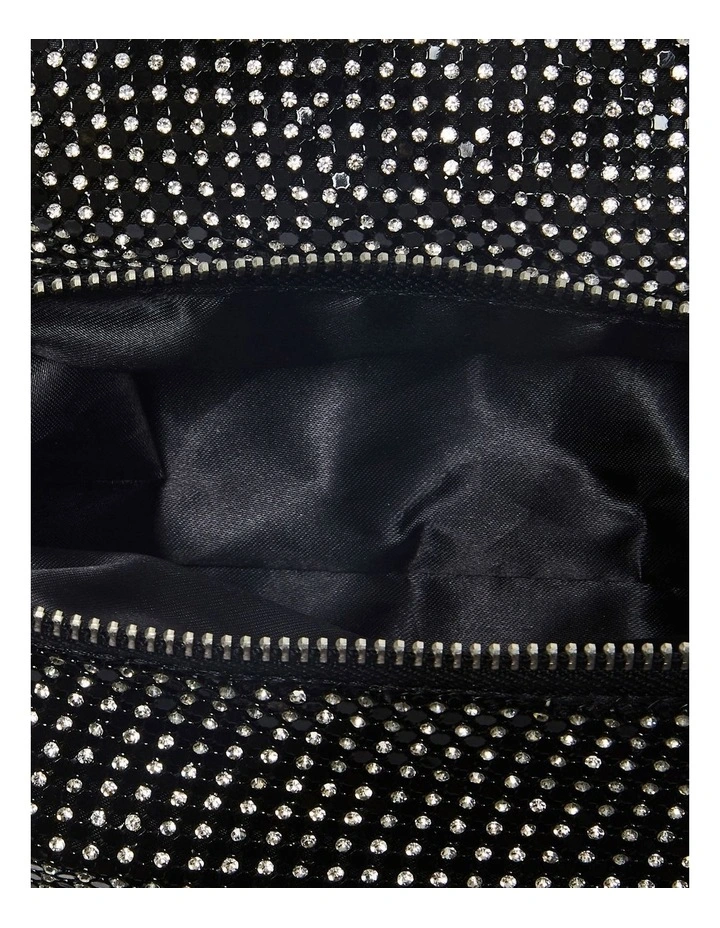 Dressed with double circular handles, a crystalised metal mesh upper and zipper tip closure, this handbag will have you shining all night long!