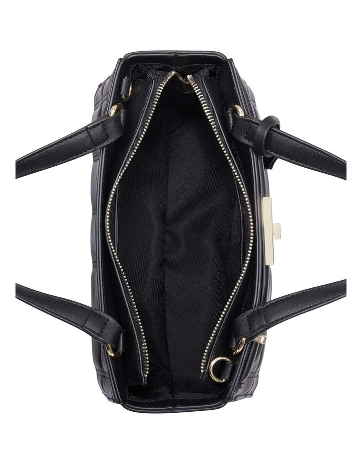 Features: Black quilted PU, gold hardware, Detachable shoulder strap, Top zip closure, Internal zip & slip pockets