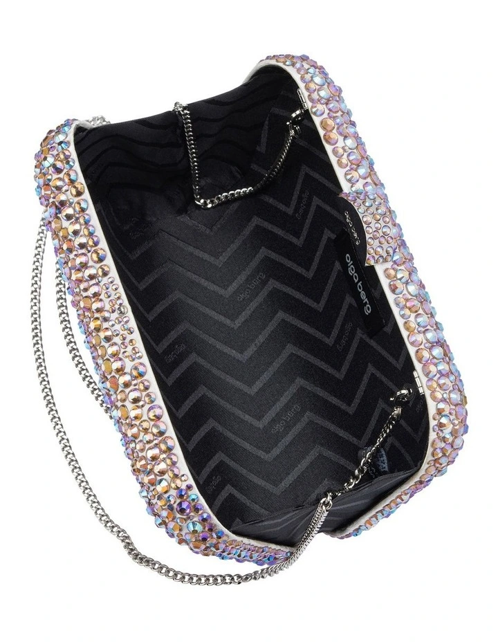 The CASEY clutch is a Red Carpet show stopper. The two tone crystals are extremely sparkly and the rounded shape fits perfectly in the palm of your hand. Wear it as a shoulder bag or wear it as a clutch by tucking the shoulder chain inside.