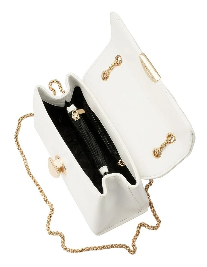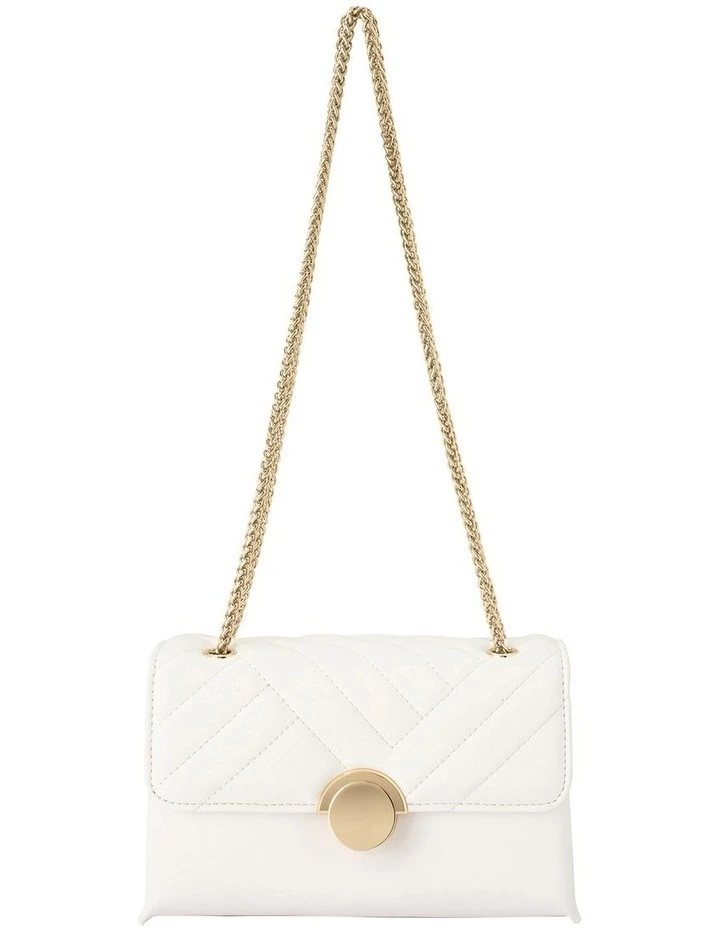 The CRESSIDA quilted White shoulder bag features a luxe vegan leather finish and opens up to a roomy interior. Wear it as a shoulder bag or a cross body bag to go hands free. This bag is a true multitasker and the perfect day to evening option.
