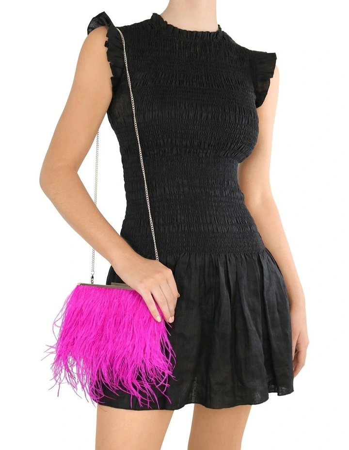 Walk on the wild side with the ESTELLE Feather Bag. Showcasing layers of feathers, this conversation starting bag is perfect to wear with jeans or your favourite LBD. Large enough to store all of your day to night essentials, this bag is as functional as it is beautiful.