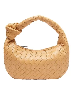 Complete any modern silhouette with BAZZ. Made to a curved silhouette that suspends from a knotted top handle, the supple upper offers an intertwined weaved technique and a discreet top zip. Carry it by hand or in the crook of the arm with crisp linen sets.