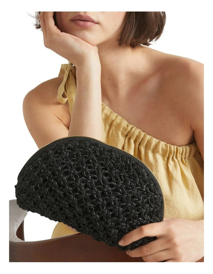 This crochet purse has been handcrafted from 100% cotton and features a wrist strap. With gold hardware and a zip closure, it is the ideal finishing touch for summer looks.