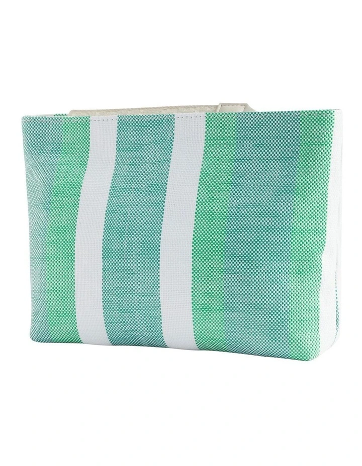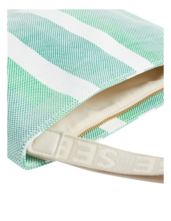 With a bright, modern stripe pattern, this pouch is the casual piece your summer wardrobe needs. It closes with a zip, and features a wrist strap decorated with the Seed Heritage logo.