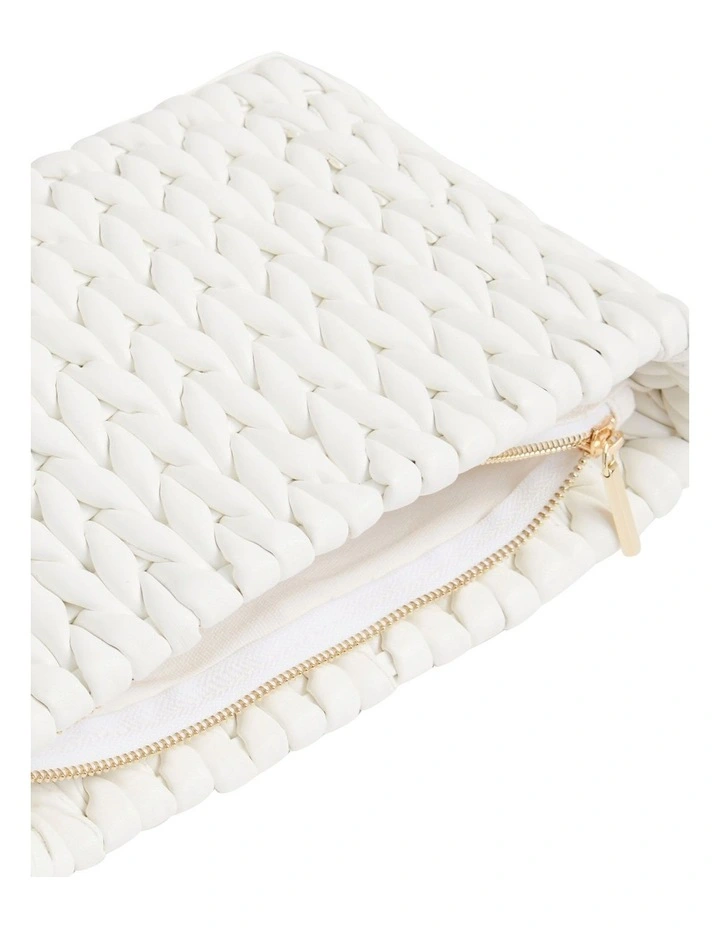 This clutch bag has a braided look, adding texture and interest to an evening essential. It closes with a zip and features an internal pocket.